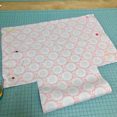 Take your outside fabric. Fold it in half so that the folded edge is at the bottom. Then cut a 4" square out of each bottom folded corner